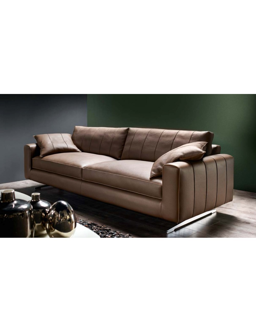 La struttura del divano è in massello di abete con rinforzi in acciaio; il telaio è imbottito in poliuretano a quote differenziate e rivestito completamente da un velluto accoppiato dello spessore di 10mm. Sedili e schienali sono in piuma, mentre tutte le lavorazioni sono eseguite rigorosamente e scrupolosamente a mano.