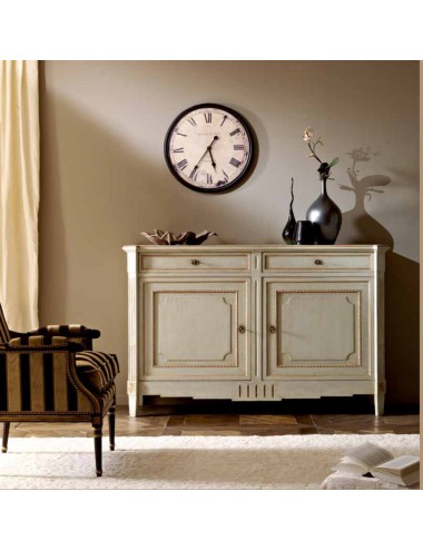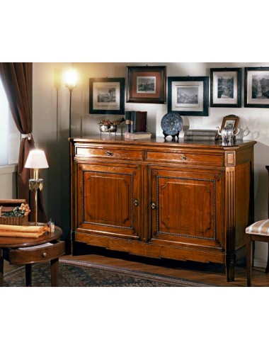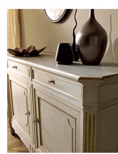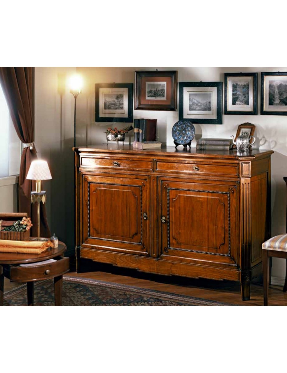 Credenza 2 ante e 2 cassetti, con possibilità di avere ante con o senza perline. Ripiani interni regolabili in frassino massello.