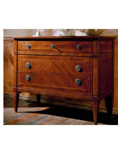 Comò "700 italiano con 3 cassetti spinato con filettatura in legno di bossosul noce massello.