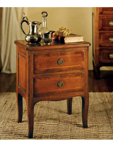 Comodino con 2 cassetti tutto in massello di noce nazionale.
