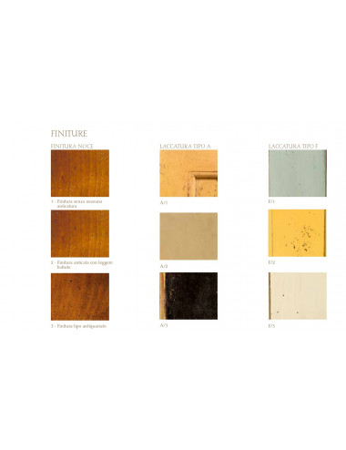 Questa produzione rappresenta “la nostra punta di diamante”. A differenza delle altre, viene creata direttamente dall'originale, utilizzando le antiche tecniche dei maestri ebanisti, nel rispetto delle tradizioni artistiche che rendono unico ogni oggetto. La costruzione e la finitura di ciascun prodotto sono realizzate avvalendosi di materie prime selezionate, lavorate con la massima accuratezza esclusivamente da artigiani qualificati. Una collezione che racconta nei dettagli la propria storia, testimonianza di un lavoro artistico e non di serie. Tutti gli incastri vengono eseguiti rigorosamente rispettando le caratteristiche del pezzo di origine o a coda di rondine unica o a coda di rondine folta a secondo dell'epoca di riferimento: '600, '700,'800. I chiodi in legno presenti e utilizzati come fermi, sono tutti passanti come gli stessi intarsi, inseriti o direttamente sul massello oppure sulla lastronatura di noce o ulivo. Gli intarsi hanno uno spessore di 0,4 o 0,5 mm a secondo dell'originale. Gli interni dei cassetti, del fondo posteriore e dei ripiani interni non a vista, vengono realizzati in frassino. I pannelli posteriori in frassino possono essere in alcuni modelli, con bugnatura ad incastro senza ausilio di collante. Le viti, vengono inserite con una speciale taglio del legno, per dare modo al pannello in massello, di potersi restringere o allargarsi secondo l'esigenze naturali del legno. Lucidatura a gommalacca oppure a gommalacca e cera d'api.