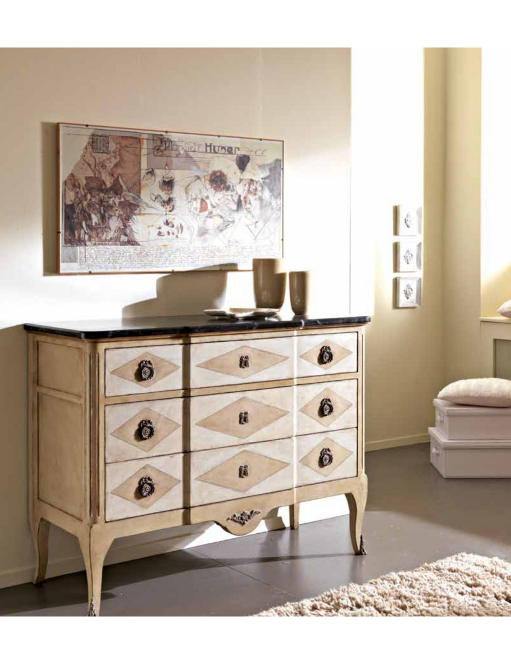 Questa produzione rappresenta “la nostra punta di diamante”. A differenza delle altre, viene creata direttamente dall'originale, utilizzando le antiche tecniche dei maestri ebanisti, nel rispetto delle tradizioni artistiche che rendono unico ogni oggetto. La costruzione e la finitura di ciascun prodotto sono realizzate avvalendosi di materie prime selezionate, lavorate con la massima accuratezza esclusivamente da artigiani qualificati. Una collezione che racconta nei dettagli la propria storia, testimonianza di un lavoro artistico e non di serie. Tutti gli incastri vengono eseguiti rigorosamente rispettando le caratteristiche del pezzo di origine o a coda di rondine unica o a coda di rondine folta a secondo dell'epoca di riferimento: '600, '700,'800. I chiodi in legno presenti e utilizzati come fermi, sono tutti passanti come gli stessi intarsi, inseriti o direttamente sul massello oppure sulla lastronatura di noce o ulivo. Gli intarsi hanno uno spessore di 0,4 o 0,5 mm a secondo dell'originale. Gli interni dei cassetti, del fondo posteriore e dei ripiani interni non a vista, vengono realizzati in frassino. I pannelli posteriori in frassino possono essere in alcuni modelli, con bugnatura ad incastro senza ausilio di collante. Le viti, vengono inserite con una speciale taglio del legno, per dare modo al pannello in massello, di potersi restringere o allargarsi secondo l'esigenze naturali del legno. Lucidatura a gommalacca oppure a gommalacca e cera d'api.