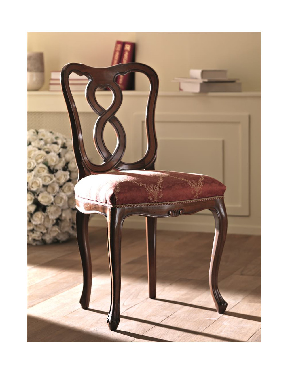 Sedia tutta in noce nazionale massello seduta in stoffa.