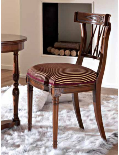 Sedia con croci nello schienale tutta in noce nazionale massello rivestimento in stoffa.