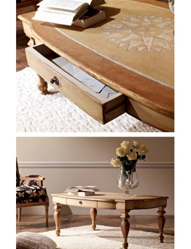 Tavolino rettangolare da salotto con cassetto frontale in noce nazionale o laccato.