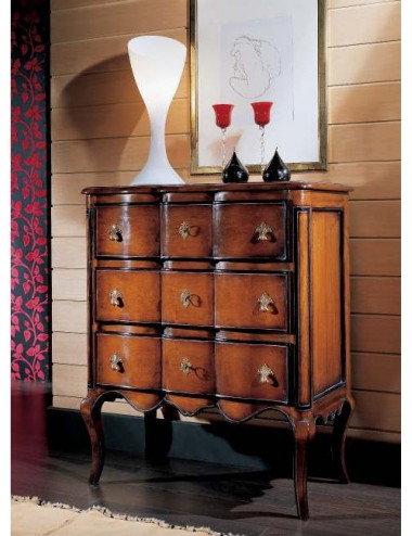Comò 3 cassetti francese, presentato con finitura ciliegio-nero.