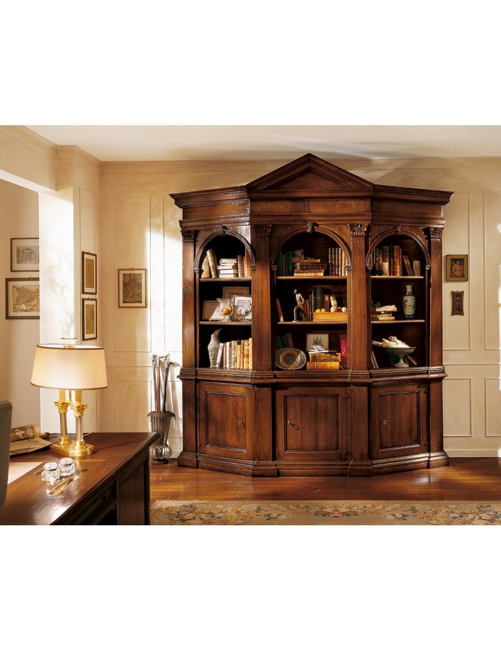 Finitura noce classico eseguita manualmente con vera cera d'api da maestri ebanisti qualificati.