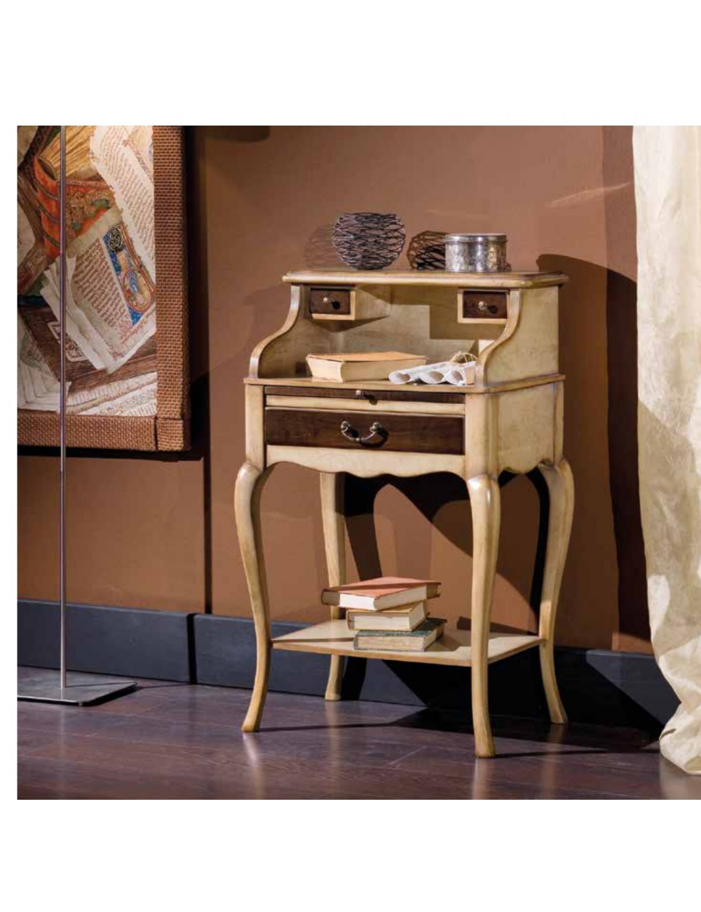 Porta telefono da ingresso, con 3 cassetti e ripiano in pelle. Viene presentato a voi in finitura bi-colore.
