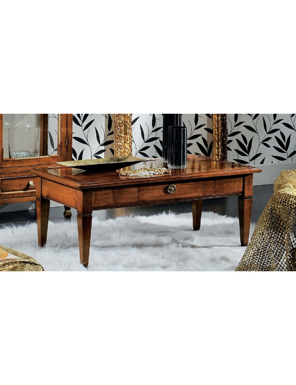 Tavolino da salotto con intarsio sul piano eseguito a rombi in legno di ciliegio.