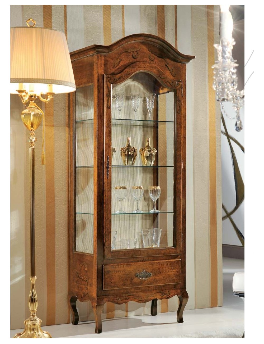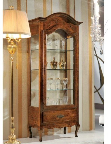 Vetrinetta 1 porta con 1 cassetto eseguita con cappello da gendarme in finitura laccata francese.