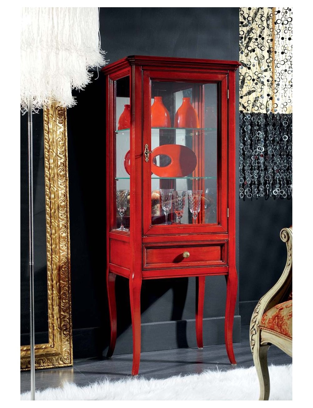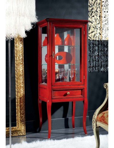 Vetrinetta 1 porta con 1 cassetto presentata in finitura ribes.
