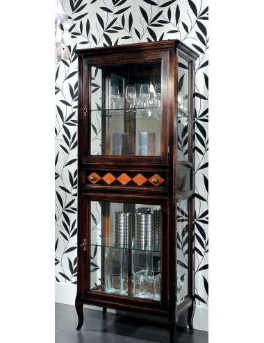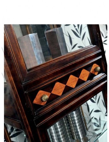 Vetrinetta 2 porte in cristallo con cassetto centrale a rombi.