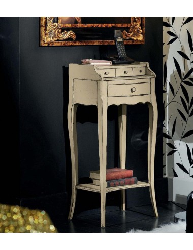 Tavolinetto da ingresso con 2 cassetti e tiretto. Presentato in finitura corda.