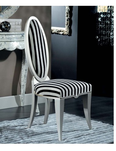 Sedia design contemporanea con spalliera e seduta rivestite in stoffa.
