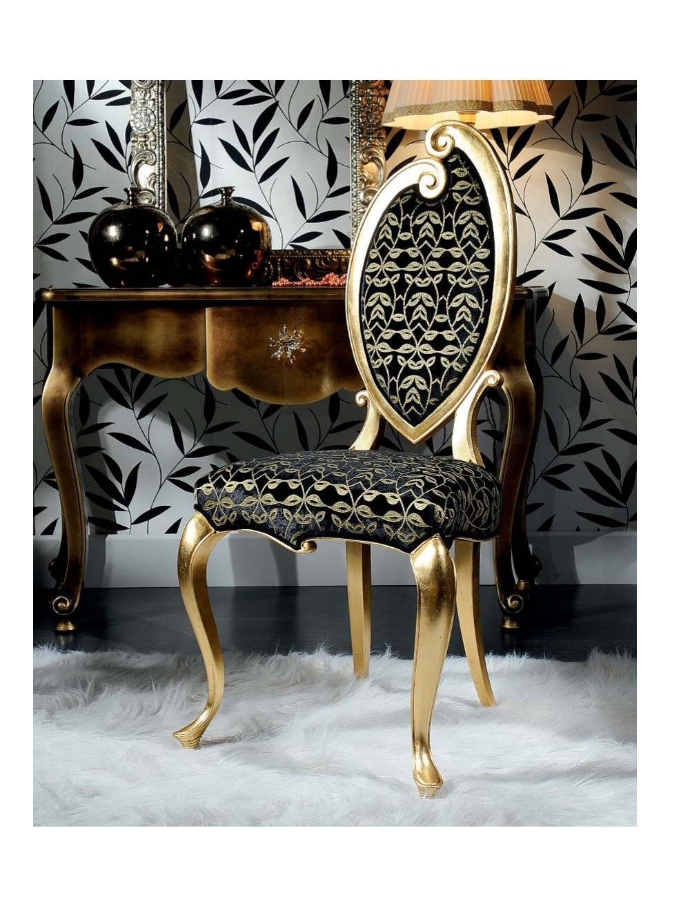 Sedia design in stile contemporaneo con finitura foglia oro.