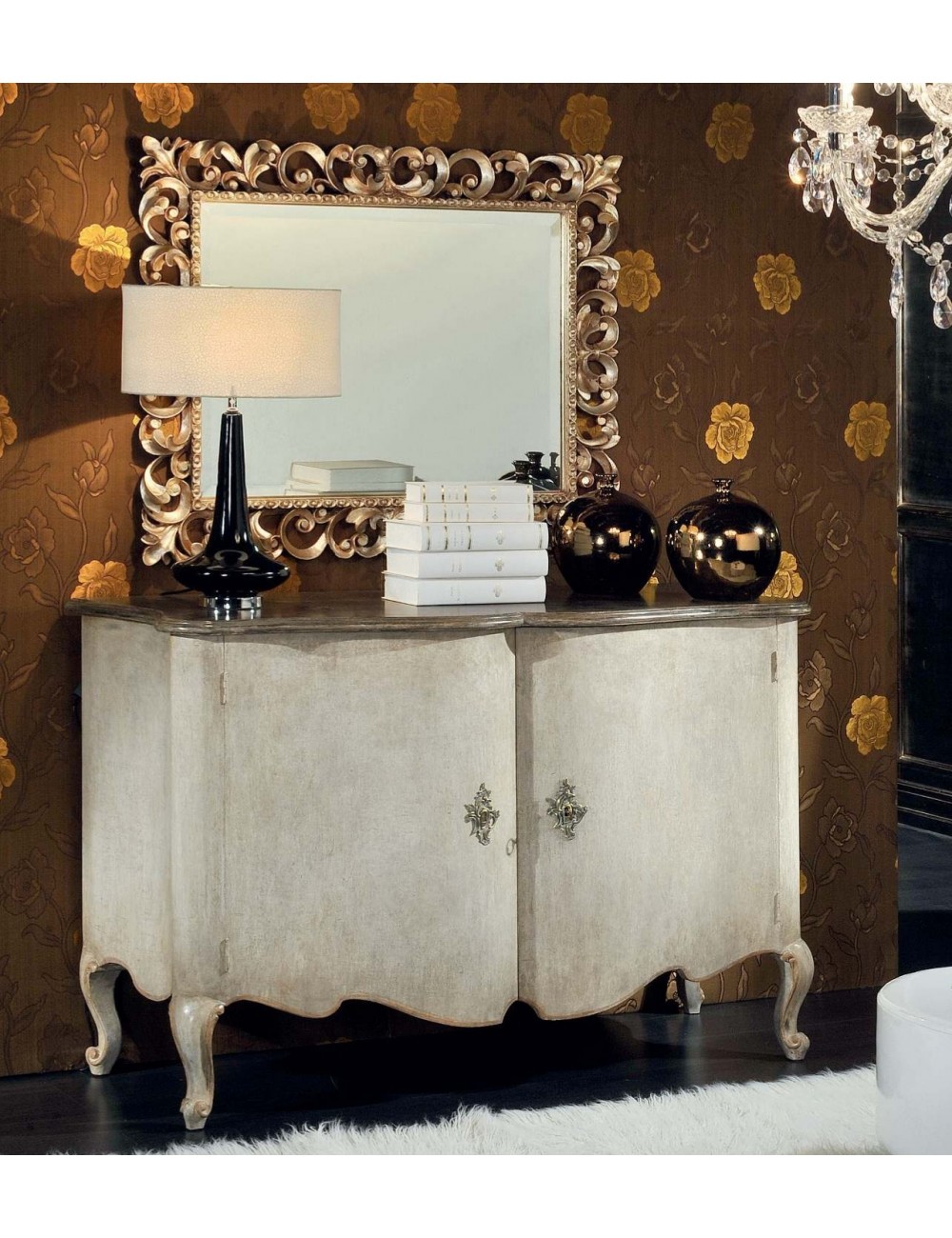 Credenza '700 sagomata con 2 sportelli grandi e presentata in finitura laccata bi-colore.