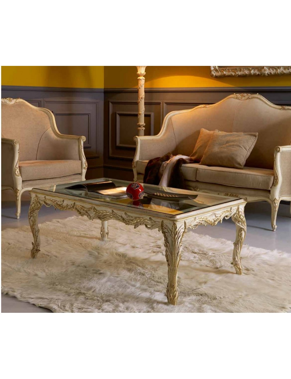 Tavolino da salotto eseguito in legno di tiglio decorato e intagliato da maestri ebanisti.