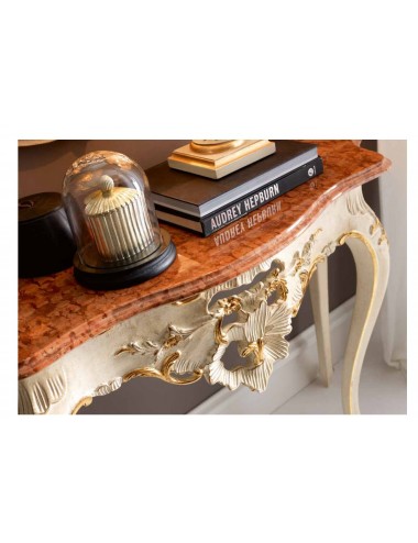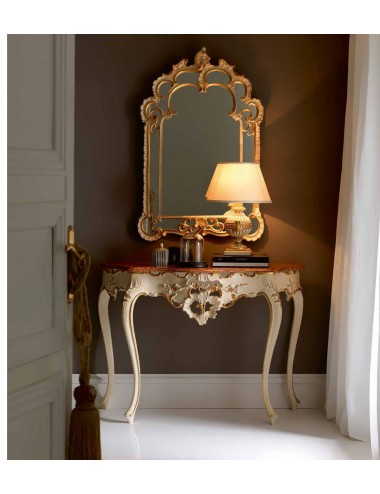 Consolle eseguita in legno di tiglio finemente intagliata e decorata da maestri ebanisti.