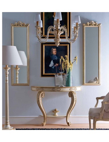 Consolle realizzata in legno di tiglio finemente intagliata e decorata da maestri ebanisti.