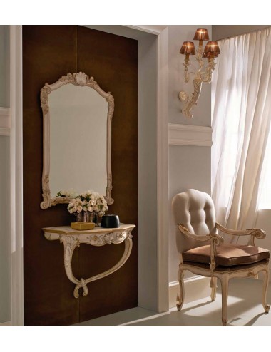 Consolle realizzata in legno di tiglio finemente intagliata e decorata da maestri ebanisti.