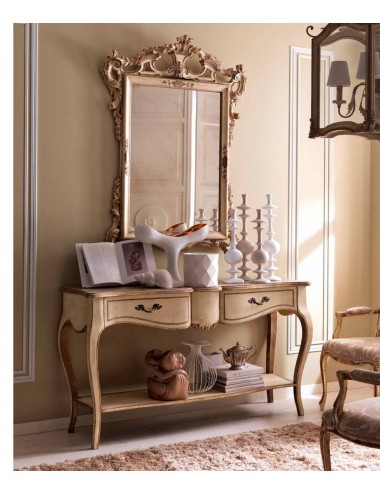 Consolle realizzata in legno di tiglio finemente intagliata e decorata da maestri ebanisti.