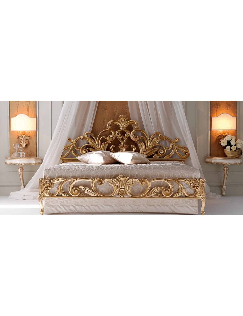 Il letto come in foto viene realizzato in legno di tiglio finemente intagliato e decorato da maestri ebanisti.