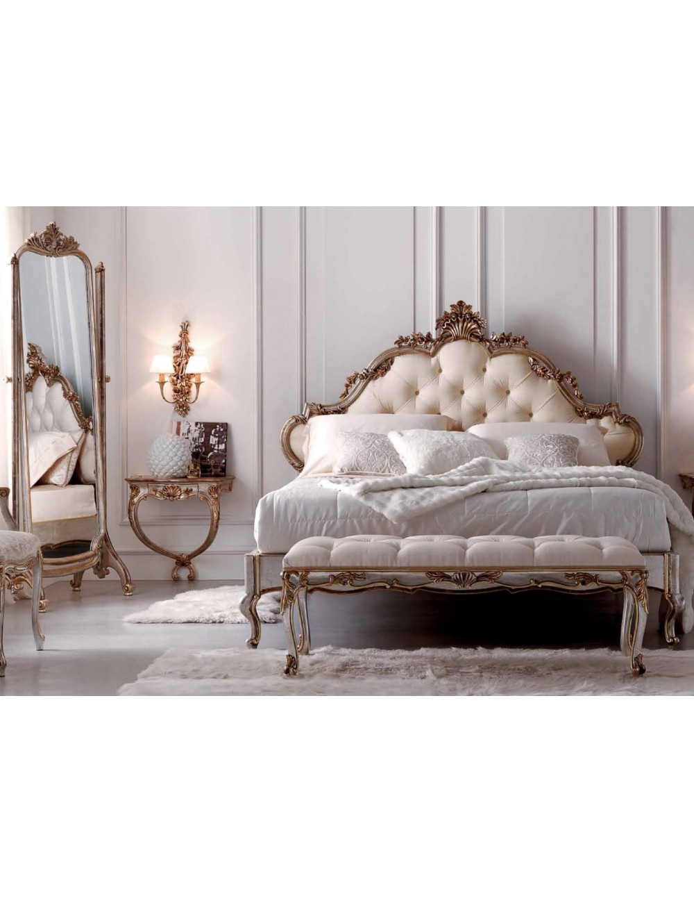 Il letto in foto viene realizzato in legno di tiglio intagliato e decorato da maestri ebanisti.