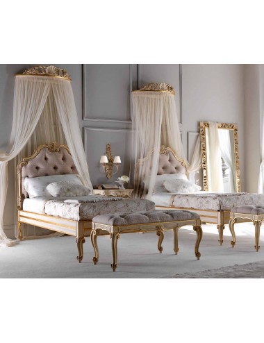 Il letto in foto viene realizzato in legno di tiglio intagliato e decorato da maestri ebanisti.