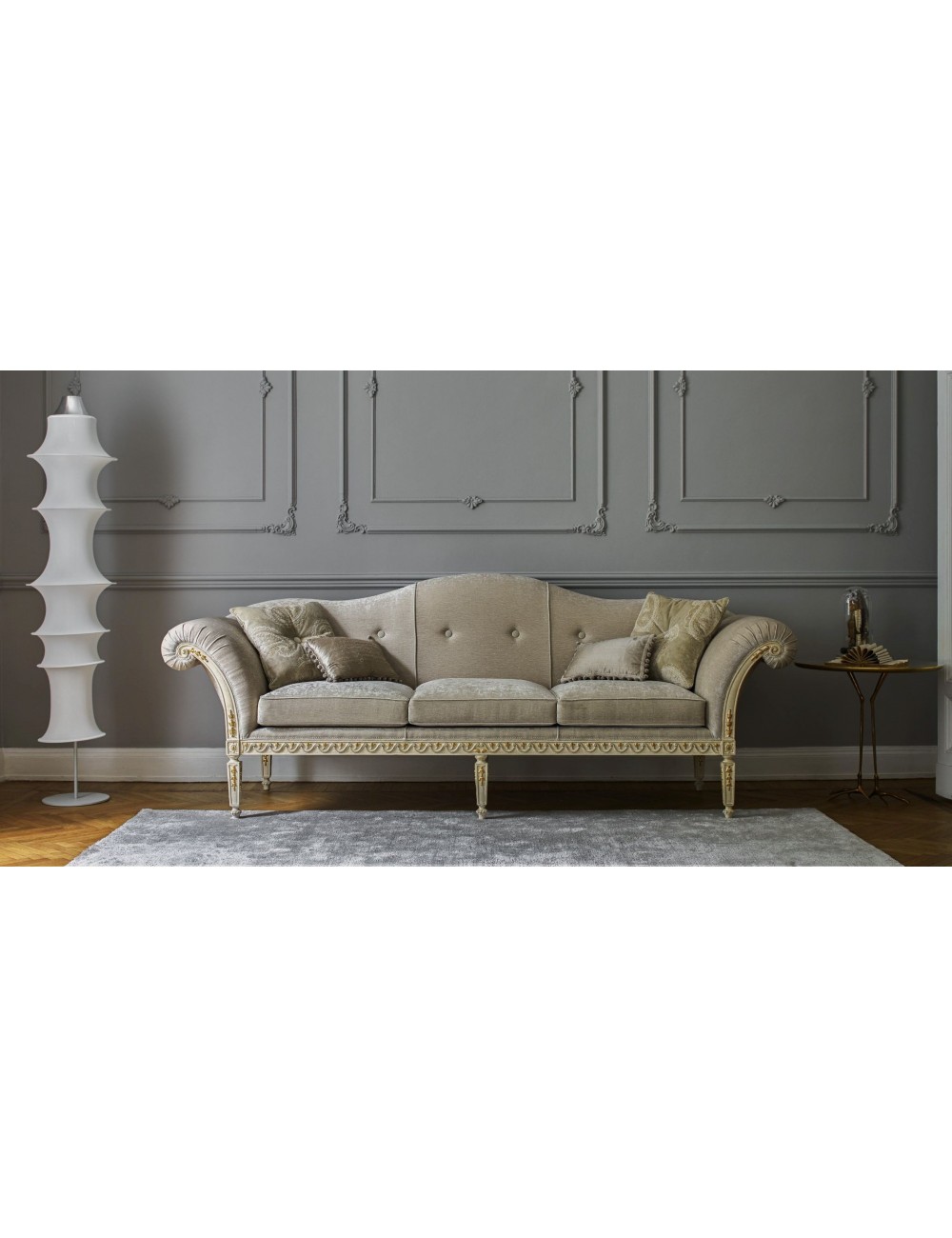 Questo divano viene realizzato in legno di tiglio finemente intagliato e decorato da maestri ebanisti.